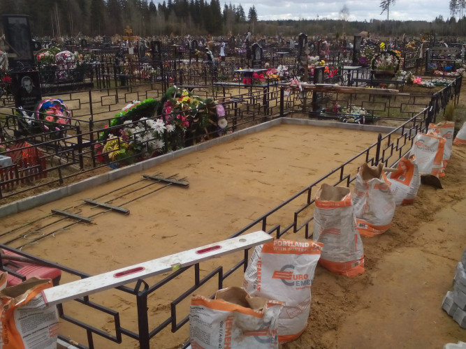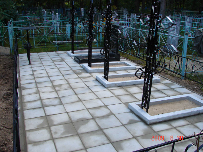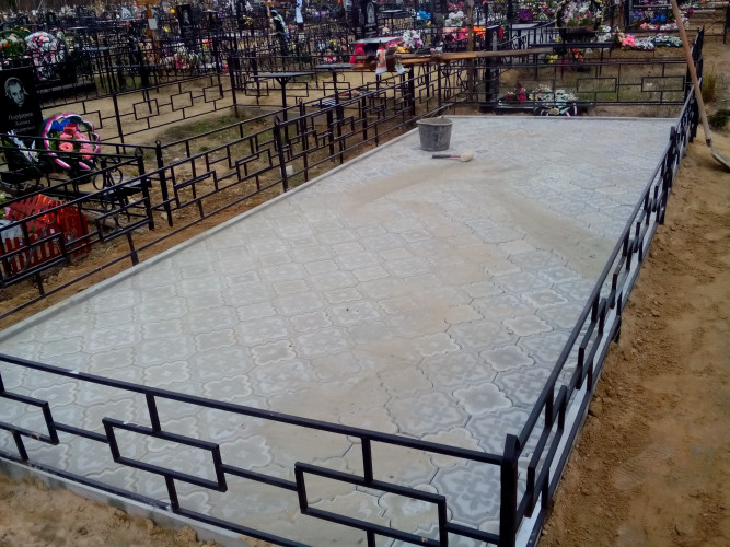 Некоторые думают, что уложив плитку можно забыть. На кладбище как правило очень много травы, и со временем в швы между плиткой попадают семена от растений. Трава начинает разрушать покрытие («пучит» плитку, расходится в стороны). Для того, чтобы основание лежало долгое время нужно периодически подметать плитку и подметать швы цементно-песчаной смесью. Так же влияет как уложена плитка. На бетонной стяжке — самый надёжный метод. Данный метод исключает провалы покрытия, «гуляния» вверх, вниз. Самый не надёжный метод — укладка на песок. Такое покрытие долго не пролежит ровно, и очень быстро зарастёт травой. Есть промежуточный вариант укладки, на цементно — песчаную смесь с применением виброплиты и геотекстиля. Мы пользуемся только первым и последним вариантом. Все работы производятся согласно СНиП Ш-8-76. Гарантия на нашу укладку тротуарной плитки до 3 лет.